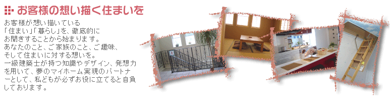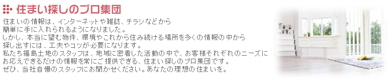 地元密着で総合不動産業として50余年の信頼と実績を積み重ねてまいりそこで培われた経験とノウハウを駆使し、お客様の夢のマイホームの実現に向けてのお手伝いをさせて頂きます。