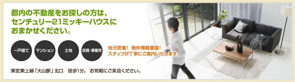 当社は、板橋区・豊島区・練馬区・文京区・北区等で一戸建住宅の分譲を行っています。テーマは「安全」に「健康」に暮らせる住まいづくり。間取り計画や外観デザインにも当社が培ったノウハウのすべてを注ぎ込んでいる『Vstesシリーズ』。ぜひ、現地でご確認ください。また賃貸仲介では東武東上線大山駅周辺のアパート・賃貸マンションを多数紹介させていただいています。インターネットにも多くの物件情報を更新しています。1度ご覧になってください。