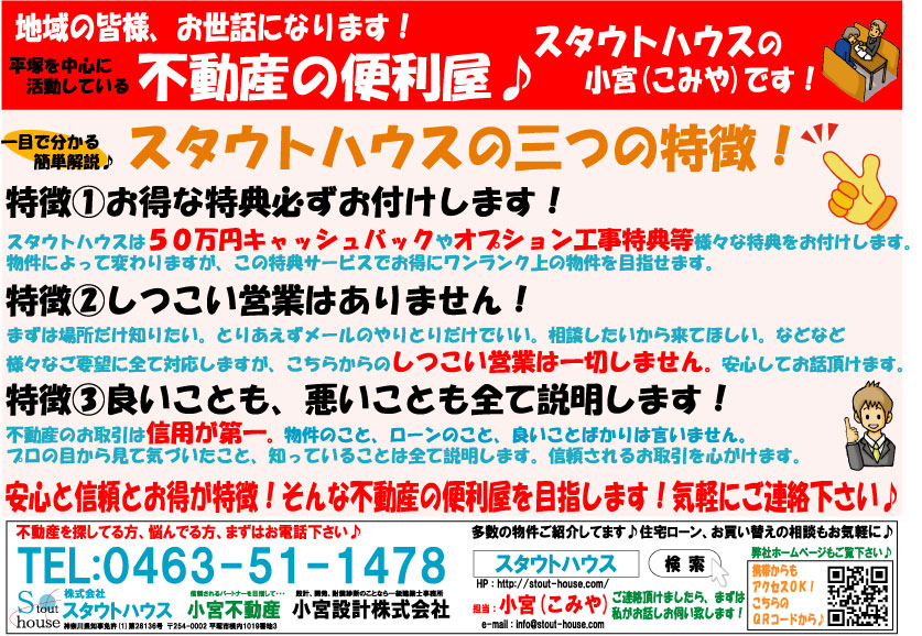 弊社は平塚・湘南地区を中心に新築戸建・土地・マンションの仲介を専門にしている不動産会社です。