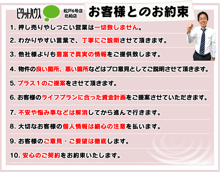 弊社では、豊富な物件情報の中からお客様に合った最適な物件をご提供するだけではなく、地域に関する情報や、住宅ローンに関するご相談等も承っております。マイホームのご購入は、人生の中でも一番大きなお買い物になるかと思いますので、些細なことから専門的な事まで何でもご相談下さい。