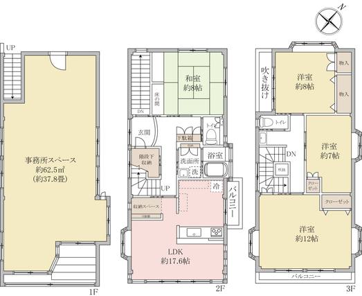 | 備考 | 都市計画:市街化区域 事務所 ポラスの仲介鉄骨造3階建て、2階3階居住スペース・1階事務所 2階3階居住スペース改装(平成17年10月) 南東向きに付き陽当たり良好全居室6帖以上丁寧に使用されております | ||