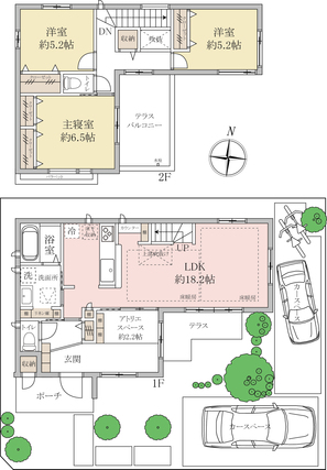 | 設備 | ポラスの保証継承可能(詳細は担当までお問い合わせください)リビング天井高2.7m、サッシ高2.2mリビング吹抜付、開放感があります各所に収納(パントリー/リネン庫/玄関ホールクローク/2階ホール収納/全居室クローゼット付/玄関横外部物入)階段下スタディカウンタースペースありご家族が自然と顔を会わせるリビング階段嬉しい設備(水栓一体型浄水器/食器洗浄乾燥機/浴室乾燥暖房機/LD床暖房/電動シャッター(一部) 他)(物件の周辺地図を表示しています。建物の位置正確でない場合がございます。) | ||