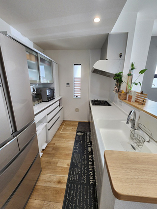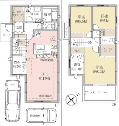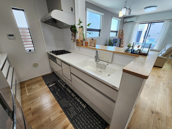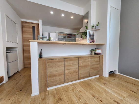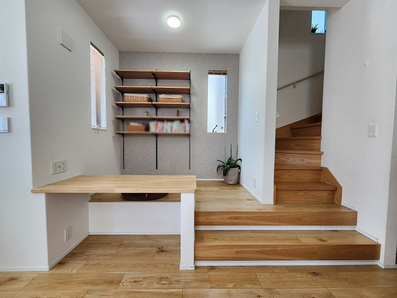 | 設備 | 工夫された間取や収納書斎・カウンター付きDEN・冷凍庫置場・玄関土間収納・ウォークインクローゼットカースペース2台(1台は車種制限あり)ポラスの30年保証とアフターメンテナンスが継承できますリビングは開放感のある天井高2.7m&ハイサッシ2.2m。スキップフロアーのDENがあり、造り付けカウンター・収納があり、リビングに機能性と広がりをもたせております。安心の構造計算実施済み防犯性と街並みの付加価値を高める「灯りのいえなみ協定」があります。 | ||