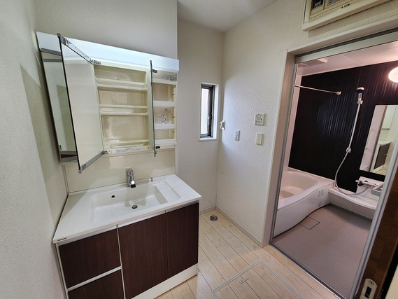 | 室内に陽光をもたらす中庭テラスとリビング前の庭は家庭菜園等も楽しめます。土地面積177.14?(53.58坪) 建売にはあまりないサイズです。南西向きで周囲が開けており、開放感&日当り&風通し良好周辺は生活利便施設が揃った閑静な住宅街 |