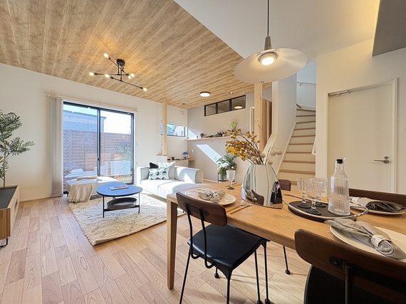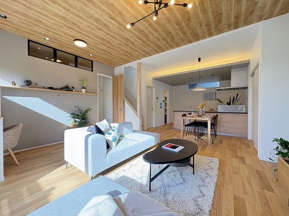 | 完成済/随時内覧可能南西側に駐車場、お庭が配置された明るいお住まい、陽光が射し込みます各所に収納(ウォークインクローゼット/土間収納/パントリー/リビング収納 他)LDK20.6帖リビング天井高2.7m、ハイサッシ2.2m開放的な空間を演出開放感があふれる、オープンキッチンご家族が自然と顔を合わせる「リビング階段」1号棟はモデルハウスとなります。ご契約後も2026年2月15日まで内覧させていただきます。物件の周辺地図を表示しています。建物の位置正確でない場合がございます。写真中のインテリア・小物などは販売価格に含まれません。 |