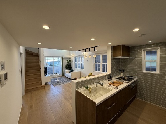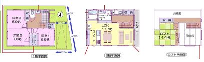 | 設備 | 令和7年10月完成の新築住宅2LDKロフトの間取り・玄関横の洗面台で帰宅したらすぐに手洗い・うがいができます。・1階洋室は全て2面採光、明るく通風良好・浴室はマイクロバブルの1坪タイプのユニットバス・タオルや下着、衣類も収納できるリネン庫あり便利・充実の設備(カップボード、キャビネット、ビルトイン食洗器)・ウォークインクローゼット、各居室収納もあり、収納豊富・14.4帖のロフトは主寝室やゲストルームとして等多目的に使えます。またカウンター付きですのでワークスペースとしてもお使いいただけます。・リビング上部は一部吹抜になっています。ご興味のある方はお気軽にお問合せください。 | ||