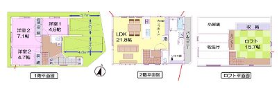 | 設備 | ・開放感あふれる南東角地・2台分の駐車スペース確保・のびやかな空間のLDKは21.8帖・充実の設備(カップボード、キャビネット、ビルトイン食洗器)・浴室はマイクロバブルの1坪タイプのユニットバス・1階洋室は全て2面採光・衣類も収納できるリネン庫あり・洗面室からバルコニーにも出ることができ、室内干しから外干しがワンフロアで完結・15.7帖のロフトは多目的に使えます・リビング上部は一部吹抜ご興味のある方はお気軽にお問合せください。 | ||