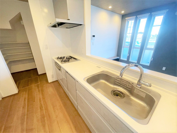 | ご夫婦住まいの方にもおすすめ2階に浴室や洗面所が配置されたお住まいですお洗濯物を干す際は階段を上がらずにバルコニーへ出られ、家事動線良好ですLDK18帖、開放感がありますキッチンとつながる階段下収納はパントリーとしてお使いいただけます(物件の周辺地図を表示しています。建物の位置正確でない場合がございます。) |
