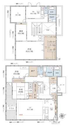 | 都市計画:市街化区域 (1階)2LDK+納戸(2階)1LDK+ウォークインクローゼット+書斎 ポラス施工注文住宅敷地面積99.1坪(327.61平米) 2SLDK1SLDK 2世帯住宅 雨の日も安心なインナーテラス付 解放感あふれる吹抜け構造のエントランス |