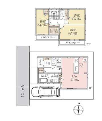 | 駐車場 | 接道状況 | 一方 西側 間口7.7m 公道 幅9.9m | |
