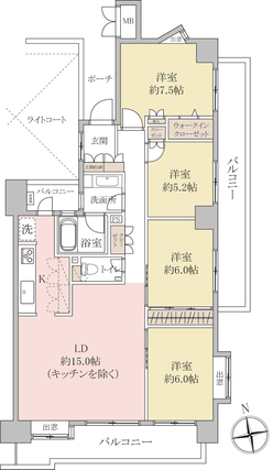 | 専有面積 | 99.91m2(壁芯) | バルコニー面積 | 24.75m2 |