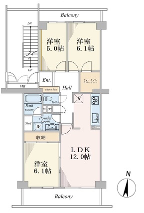 | 専有面積 | 71.4m2(壁芯) | バルコニー面積 | 13.35m2 |