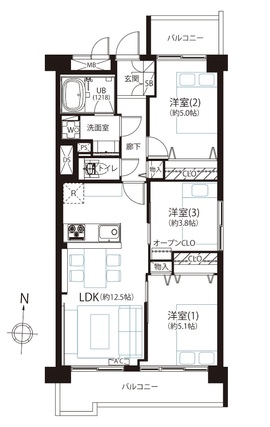 | 専有面積 | 60.2m2(壁芯) | バルコニー面積 | 10.99m2 |