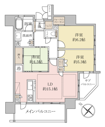 | 専有面積 | 70.42m2(壁芯) | バルコニー面積 | 14.94m2 |