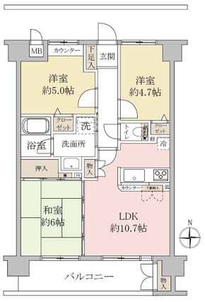 | 専有面積 | 60.27m2(壁芯) | バルコニー面積 | 8.62m2 |