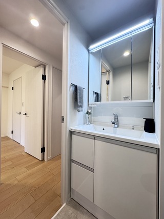 | 設備 | リフォーム内容(2025年5月完了)/システムキッチン(食洗機・浄水器内蔵シャワー混合水栓・人工大理石トップ)、ユニットバス(追焚機能付・浴室換気乾燥暖房機)、シャワートイレ(暖房機能付便座)、洗面化粧台(シャワー水栓・三面鏡)、壁天井クロス、給湯器、フロアタイル、フローリング、給排水管専有部分内新規配管他 伝達事項有り(物件の周辺地図を表示しています。建物の位置正確でない場合がございます。) |