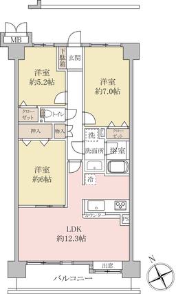 | 専有面積 | 72.54m2(壁芯) | バルコニー面積 | 9.92m2 |