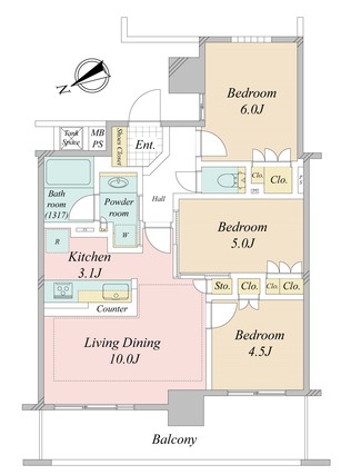 | 専有面積 | 62.93m2(壁芯) | バルコニー面積 | 12.56m2 |