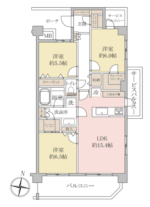 | 専有面積 | 80.19m2(壁芯) | バルコニー面積 | 11.38m2 |