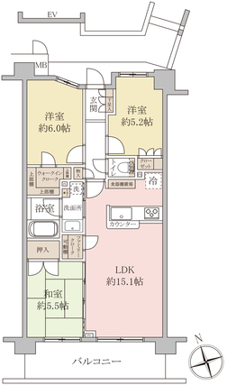 | 専有面積 | 68.96m2(壁芯) | バルコニー面積 | 10.98m2 |