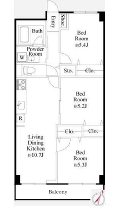 | 専有面積 | 63.22m2(壁芯) | バルコニー面積 | 7.24m2 |