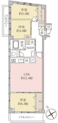| 専有面積 | 64.55m2(壁芯) | バルコニー面積 | 9.17m2 |