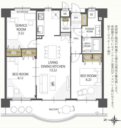 | 専有面積 | 65.81m2(壁芯) | バルコニー面積 | 14.61m2 |