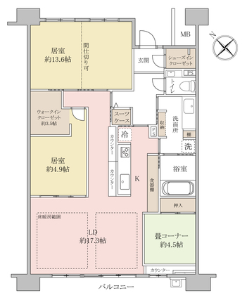 | 専有面積 | 106.68m2(壁芯) | バルコニー面積 | 17m2 |