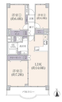 | 専有面積 | 72.3m2(壁芯) | バルコニー面積 | 8.67m2 |