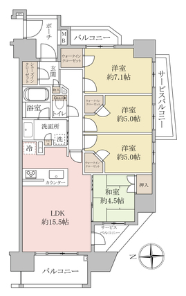 | 専有面積 | 86.03m2(壁芯) | バルコニー面積 | 9.95m2 |
