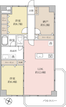 | 専有面積 | 64.95m2(壁芯) | バルコニー面積 | 7.96m2 |