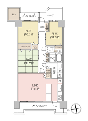 | 専有面積 | 74.87m2(壁芯) | バルコニー面積 | 13.1m2 |