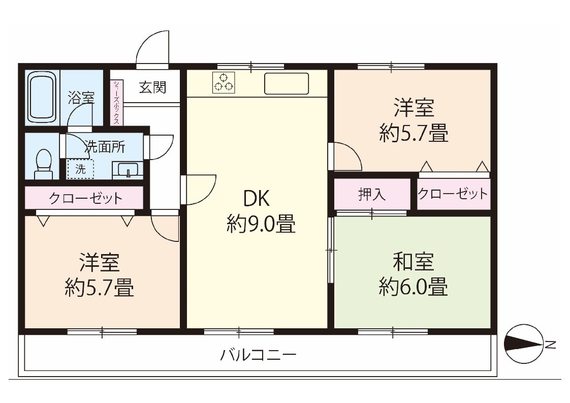 | 設備 | Life Information・FOODS MARKET Selection三郷店:徒歩7分(550m)・ファミリーマート三郷かまくら店:徒歩5分(400m)・DCM三郷鷹野店:徒歩7分(500m)・三郷市立南中学校:徒歩9分(650m)・三郷市立鷹野小学校:徒歩6分(450m)・コビープリスクールみさとながとろ:徒歩7分(550m)・みさと幼稚園:徒歩10分(800m)・特定医療法人財団健和会みさと健和病院:徒歩6分(450m) |