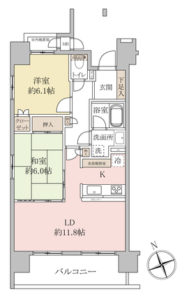 | 専有面積 | 61.24m2(壁芯) | バルコニー面積 | 10.8m2 |