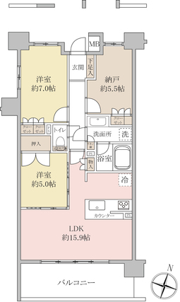バルコニーは南向きのため陽当たり良好です。大切なペットとも一緒に暮らせます(細則有)リビング横の5.0帖の洋室は、ドアを開放するとリビング・ダイニングと一体して使用できます。各居室、キッチン横に収納スペースがございます。イオンモール北戸田やスーパーベルクス・島忠ホームズ等の買い物施設が充実しております。