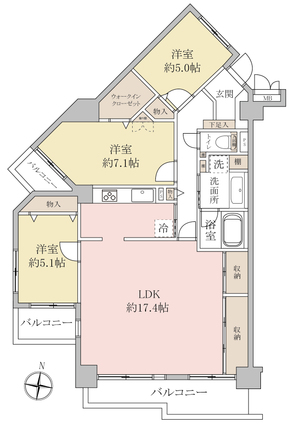 | 専有面積 | 91.98m2(壁芯) | バルコニー面積 | 12.99m2 |