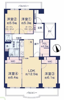 | 専有面積 | 89.35m2(壁芯) | バルコニー面積 | 13.35m2 |