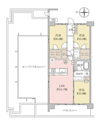 | 専有面積 | 70.2m2(壁芯) | バルコニー面積 | 14.4m2 |