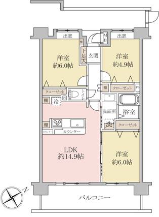 | 専有面積 | 67.2m2(壁芯) | バルコニー面積 | 12.24m2 |