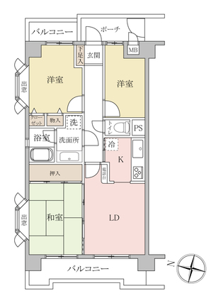 | 専有面積 | 60.03m2(壁芯) | バルコニー面積 | 9.46m2 |