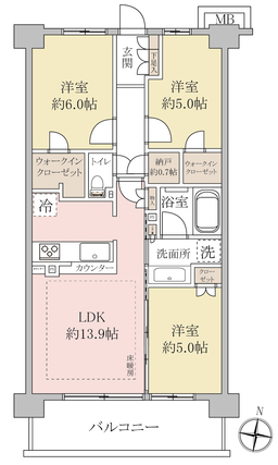 | 専有面積 | 67.2m2(壁芯) | バルコニー面積 | 10.8m2 |