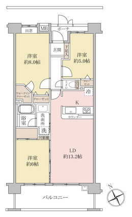 | 専有面積 | 75.19m2(壁芯) | バルコニー面積 | 12.6m2 |