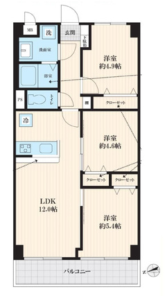 | 専有面積 | 61.6m2(壁芯) | バルコニー面積 | 7.28m2 |