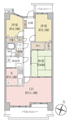| 専有面積 | 70.59m2(壁芯) | バルコニー面積 | 13.25m2 |