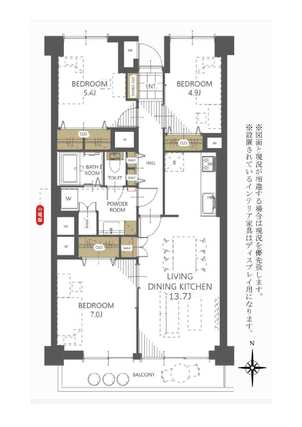 | 専有面積 | 78m2(壁芯) | バルコニー面積 | 7.54m2 |