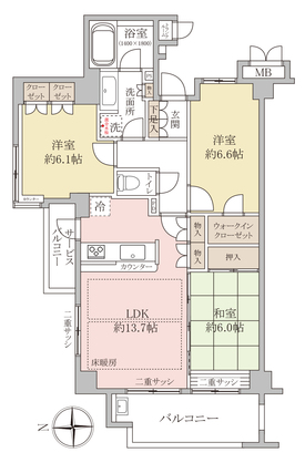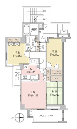 | 専有面積 | 75.14m2(壁芯) | バルコニー面積 | 8.51m2 |
