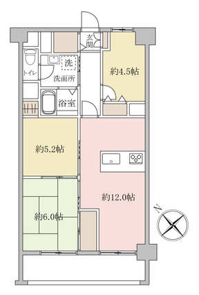 | 専有面積 | 63m2(壁芯) | バルコニー面積 | 8.4m2 |