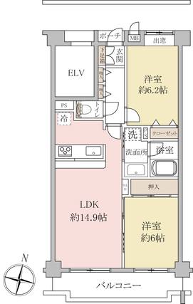 | 専有面積 | 60.39m2(壁芯) | バルコニー面積 | 8.8m2 |