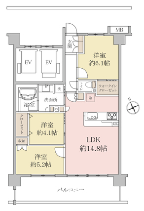 | 専有面積 | 68.94m2(壁芯) | バルコニー面積 | 15.6m2 |