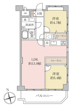 | 専有面積 | 53.76m2(壁芯) | バルコニー面積 | 7.95m2 |
